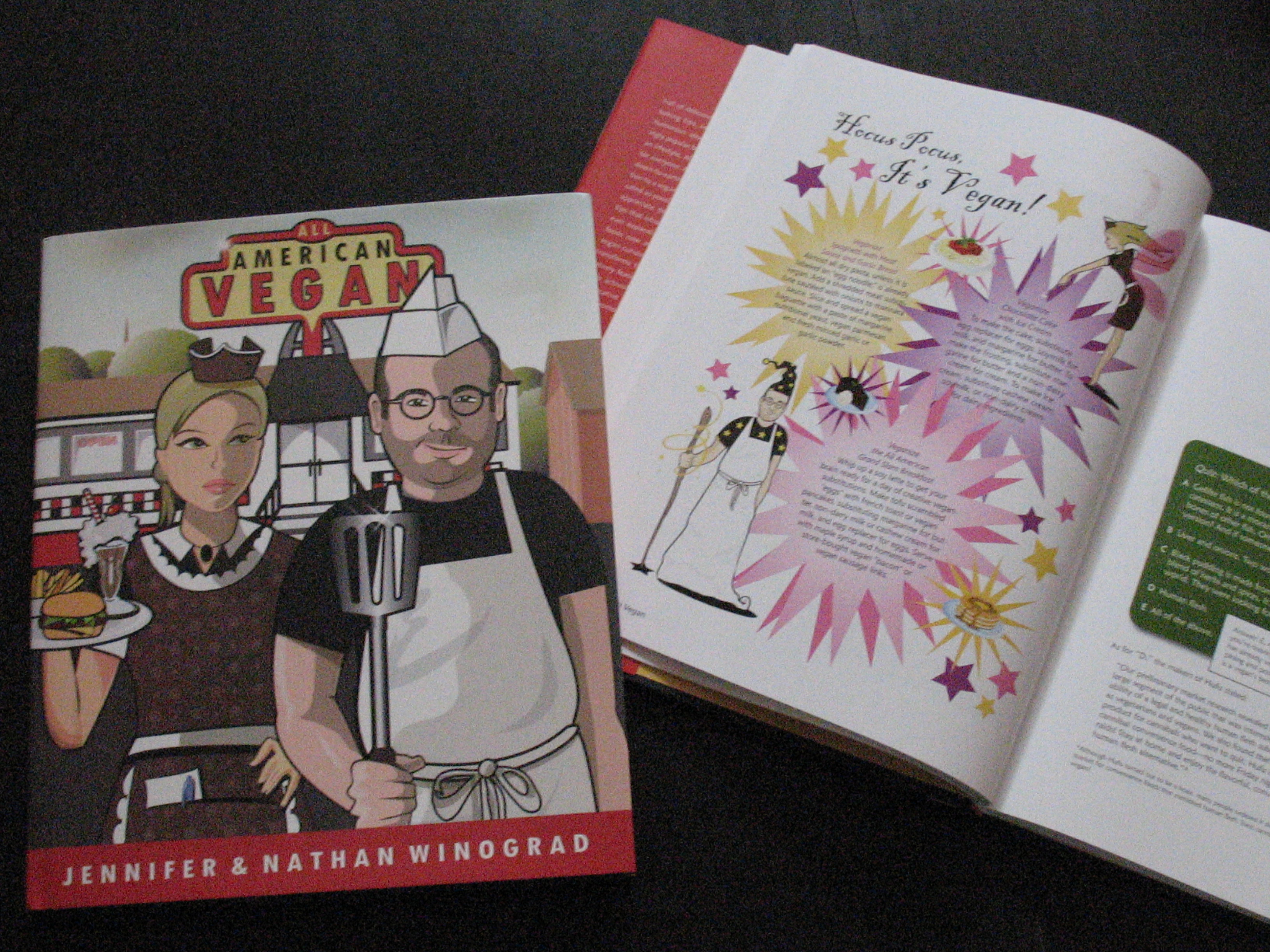 But, still, opening the package and seeing your book, years of work, in all its published glory is really exciting. And I must say, the recent arrival of our author copy of All American Vegan did not disappoint. Is that my wife and I on the cover in a rendition of American Gothic? Why yes it is! Is that me on the “Hocus Pocus, It’s Vegan!” page as a vegan wizard and my wife as a fairy? Why yes it is! Look for it December 1 in a bookstore near you, just in time for Christmas and those New Year’s resolutions.