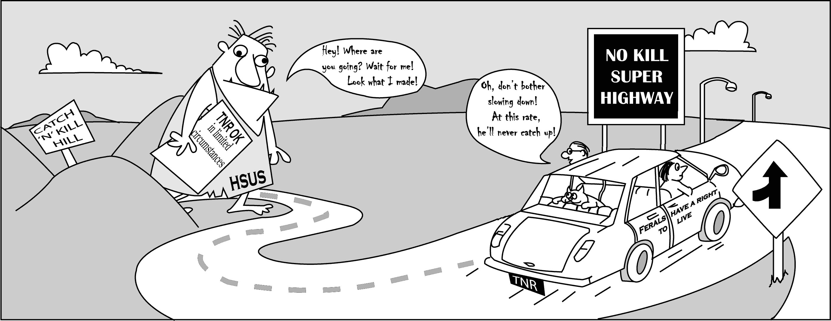 In 2006, after decades of calling Trap-Neuter-Release (TNR) programs for cats “inhumane,” “abhorrent,” and “subsidized abandonment,” after asking a prosecutor to arrest and jail feral cat caretakers for violation of state cruelty laws against abandonment, and after calling mass killing of feral cats in pounds and shelters “the only practical and humane solution,” the Humane Society of the United States indicated it was updating its feral cat position to reflect the emerging consensus of the animal control community, a community with a history of mass slaughter. They had no choice.